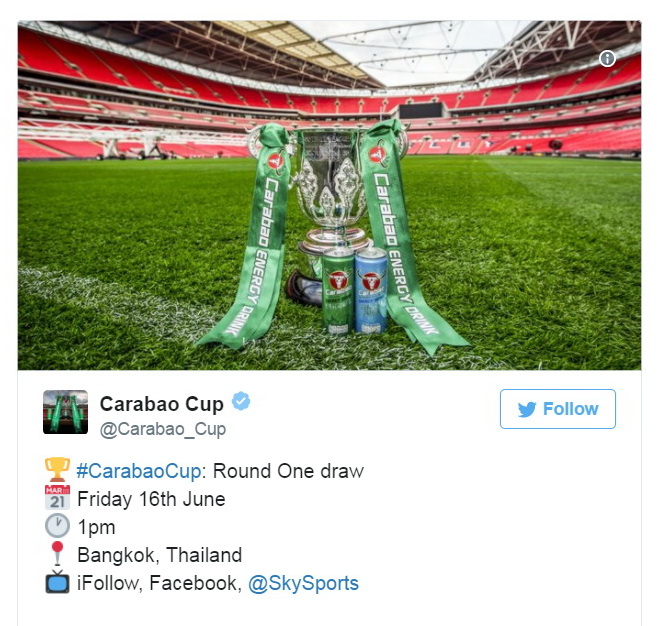 ฟุตบอล อีเอฟแอล คัพ หรือ ลีกคัพ เดิม เตรียมเปลี่ยนสปอนเซอร์ใหม่เป็น คาราบาวเเดง ที่จะเข้ามาเป็นสปอนเซอร์หลักภายในฤดูกาลหน้า มีการรายงานว่า ลีกคัพ จะถูกเปลี่ยนชื่อเป็นรายการ "คาราบาว คัพ" และ