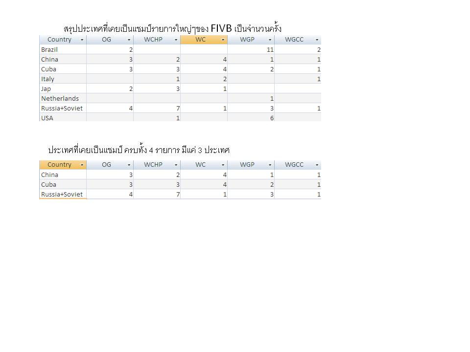 รวบรวมประเทศที่เคยได้แชมป์ 4 รายการหลักของ FIVB สำหรับทีมหญิงมาให้ชม
