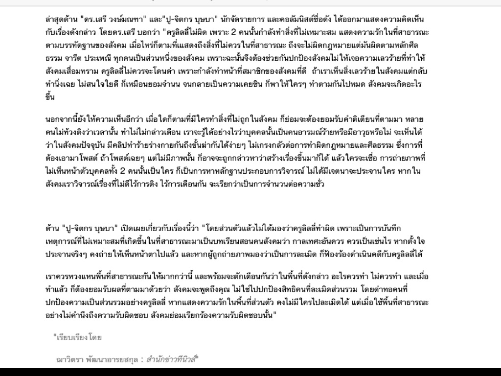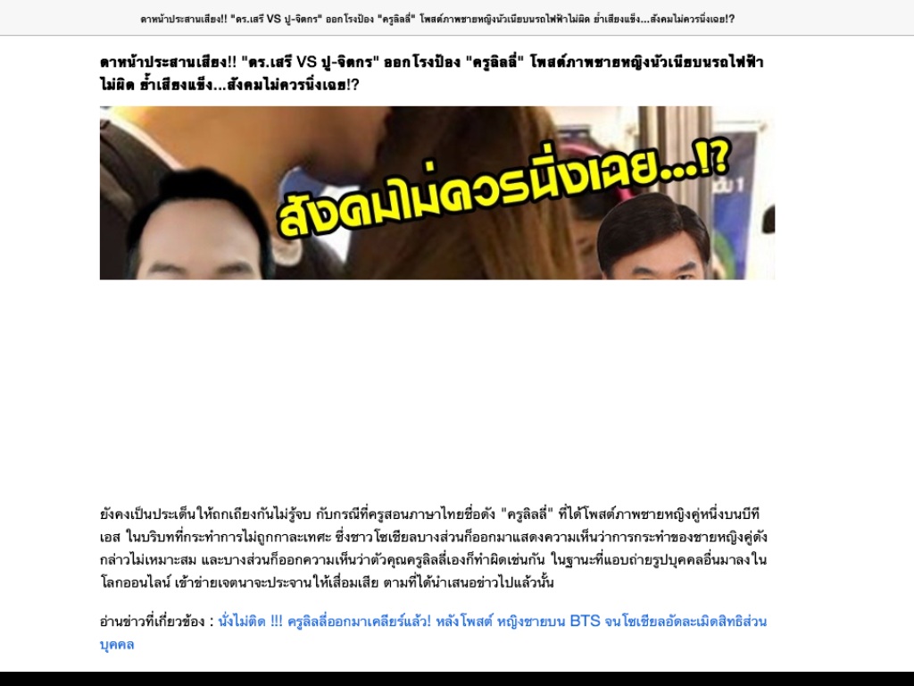 ดาหน้าประสานเสียง!!!ดร.เสรี ปูจิตรกร ออกโรงป้องครูลิลลี่โพสภาพชายหญิงนัวเนียบนรถไฟฟ้าไม่ผิด ย้ำสังคมไม่ควรนิ่งเฉย