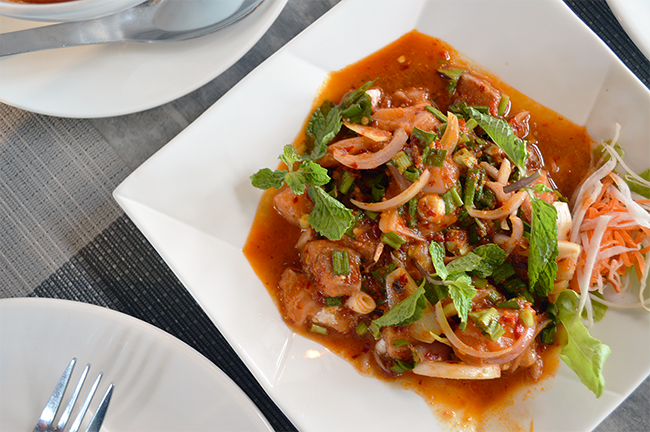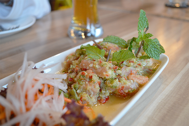 เมนูที่สี่เป็น “พล่าปลาแซลมอน” สนนราคาอยู่ที่ 170 บาท เราสั่งเมนูนี้มาดามใจเพื่อกลบวาซาบิของ Big Mount Zeed ค่ะ T^T ส่วนตัวเราชอบเมนูนี้ค่ะ เพราะน้ำยำค่อนข้างเข้มข้น เผ็ดกำลังดี ติดตรงที่ออกรสเค็มมากไปหน่อย แต่ถ้าทานคู่กับข้าวสวยร้อนๆ นี่อร่อยกำลังดีเลย เราให้คะแนน 7/10 ค่า