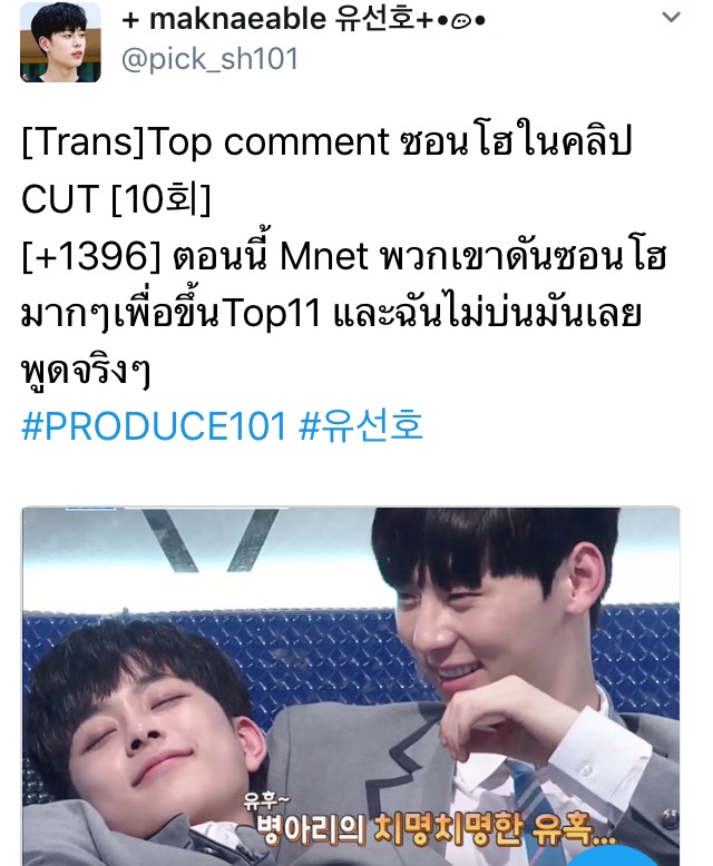 PRODUCE101 แปลกระทู้เจี๊ยบซอนโฮในคลิป CUT10 (+ อัพเดทซัพพอร์ตแม่หลิน)