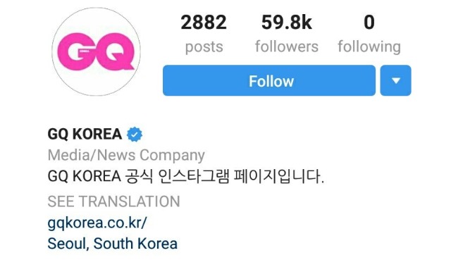 IG หลักของ GQ KOREA (เป็นพวกสื่อข่าวด้านแฟชั่นของผู้ชาย)
