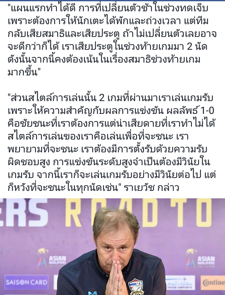โค้ชซิโก้ ให้สัมภาษณ์หลังเกมแพ้ญี่ปุ่นว่า ทีมชาติไทยไม่มีอะไรเสียหายแพ้ยอดทีมเบอร์ 1 ของเอเชีย