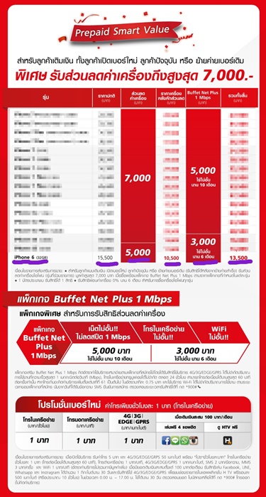 โปร prepaid smart Value  ส่วนลดค่าเครื่องสูงสุด 7000 บาท   สำหรับลูกค้าเติมเงิน
