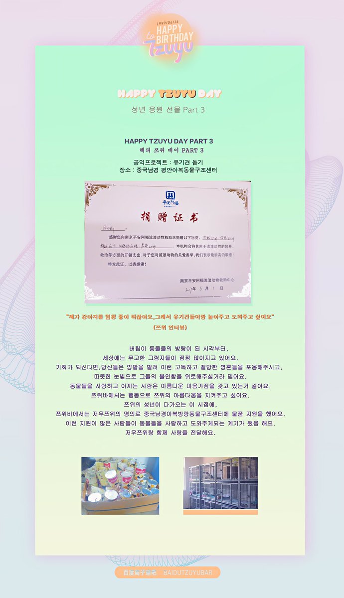 โดยตั้งชื่อสัตว์เหล่านั้นด้วยชื่อ Chou Tzuyu เป็นของขวัญให้น้องจื่อ ^ ^