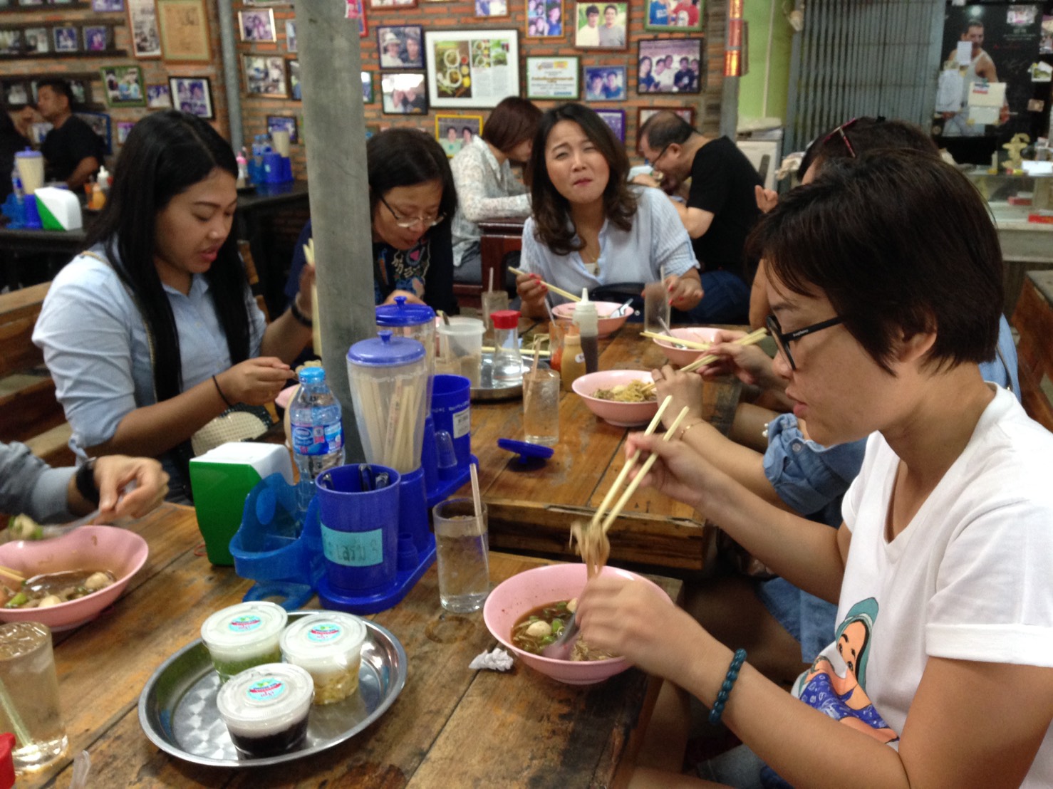 เสียงพูดคุยสนุกสนานบนรถ บัดนี้เงียบกริบ เพราะปากกำลังทำหน้าที่อื่นอย่างเอร็ดอร่อย ที่ร้านคนเยอะมาก ขนาดเราไปถึงบ่ายสองเกือบครึ่งด้วยซ้ำ แต่ก๋วยเตี๋ยวออกเร็วมาก และเราก็จัดการเรียบร้อยภายในเวลาอันรวดเร็วเช่นกัน