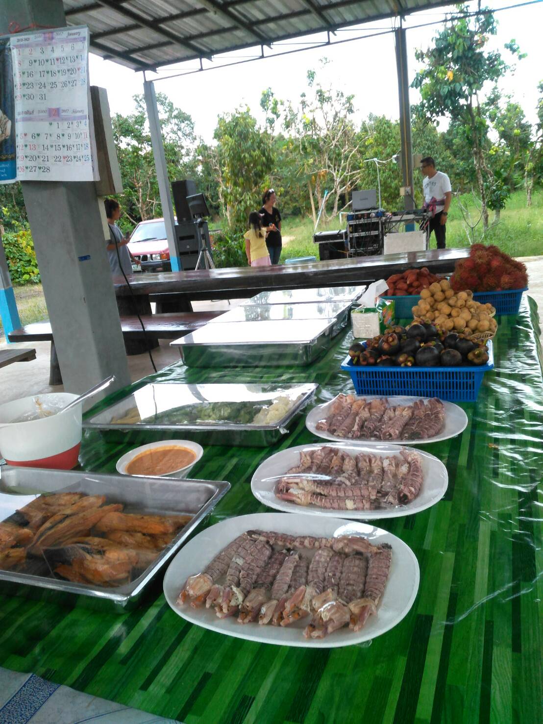 ใครที่ชอบผักจิ้มน้ำพริกก็มีครับ อยู่หน้ากั้งสามจานสีส้ม ๆ นั่นแหละ น้ำพริกปูไข่ ทำจากไข่ปูทะเลล้วน ๆ ไม่เคยต้องลองกันเลยทีเดียว