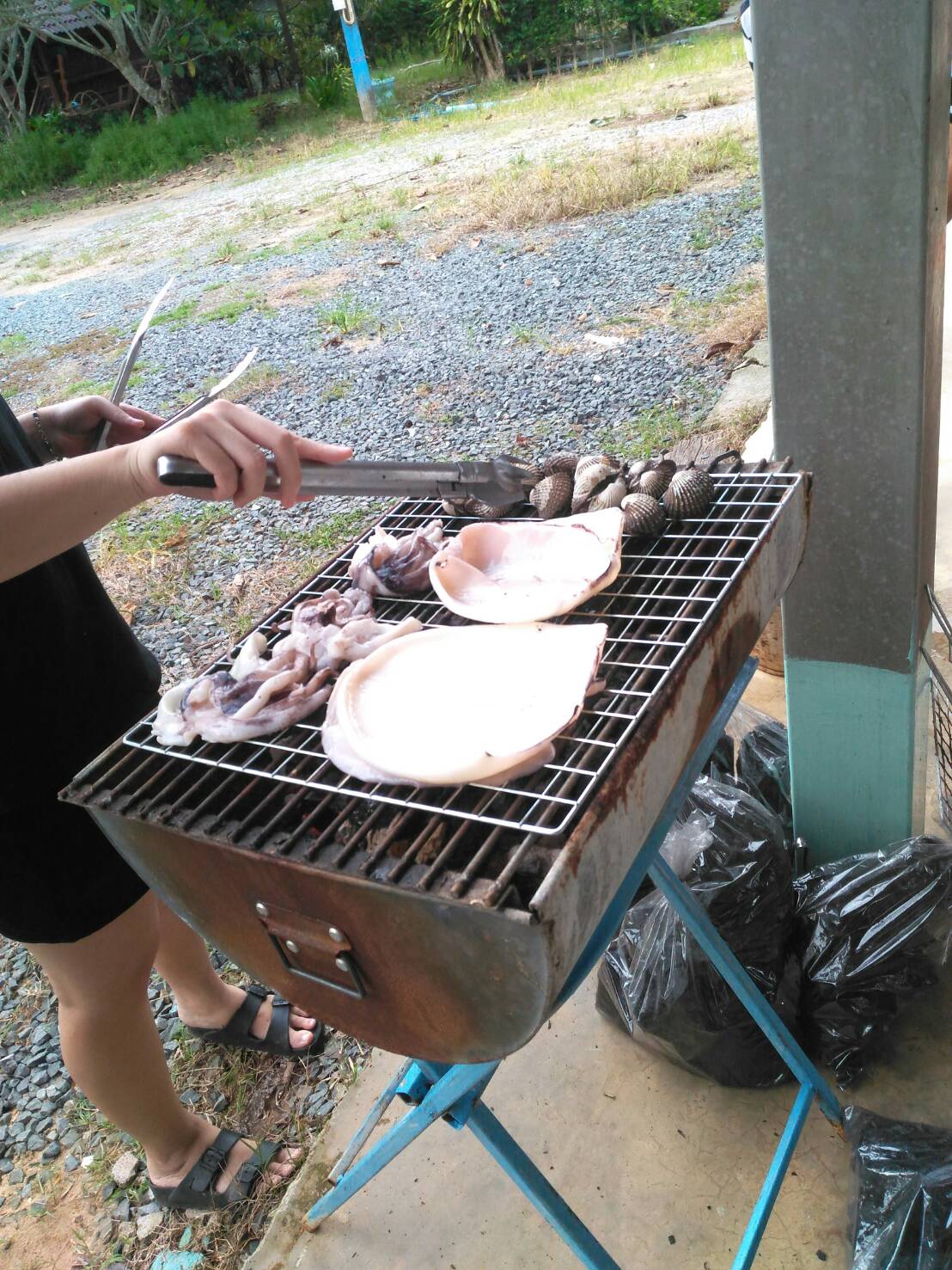 หมึกหอมย่าง ตัวขนาดใหญ่ ส่งกลิ่นฉุยโชยมาขณะย่าง
