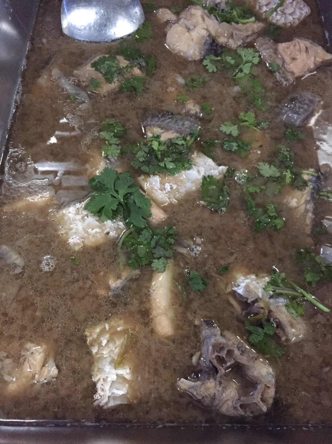 ปลาต้มส้ม อาหารพื้นเมือง ใช้ปลากะพงเนื้อ ๆ ใส่น้ำมะขามกับกะปิ ไม่ใส่ขิงเหมือนกรุงเทพ ซดคล่องคอชื่นใจ