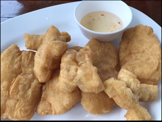 ปาท่องโก๋จิ้มน้ำจิ้ม สูตรนี้แม่ของผู้เขียนเองเป็นเจ้าของสูตรต้นตำรับ เมื่อห้าสิบกว่าปีก่อน บ้านเราเป็นร้านกาแฟเล็ก ๆ อยู่บ้านญวนที่ อ.ขลุง รับปาท่องโก๋จากตลาดให้ลูกค้ากาแฟได้กินกัน ปาท่องโก๋ก็มาส่งบ้างไม่ส่งบ้าง จนแม่บอกว่าถ้าหยุด ๆ ส่ง ๆ แบบนี้ ต่อไปจะทำเองแล้วนะ แม่ลองผิด ๆ ลองถูกหลายวัน จนในที่สุดก็ลงตัว แล้วก็แตกแขนงความคิดลองทำน้ำจิ้มสำหรับจิ้มปาท่องโก๋ ปรากฏว่าเวิร์คมาก ติดใจกัน ตั้งแต่นั้นมา ปาท่องโก๋ทุกเจ้าในอำเภอขลุงต้องมีน้ำจิ้ม ลามไปถึงแทบทุกอำเภอ ต้องมีน้ำจิ้ม