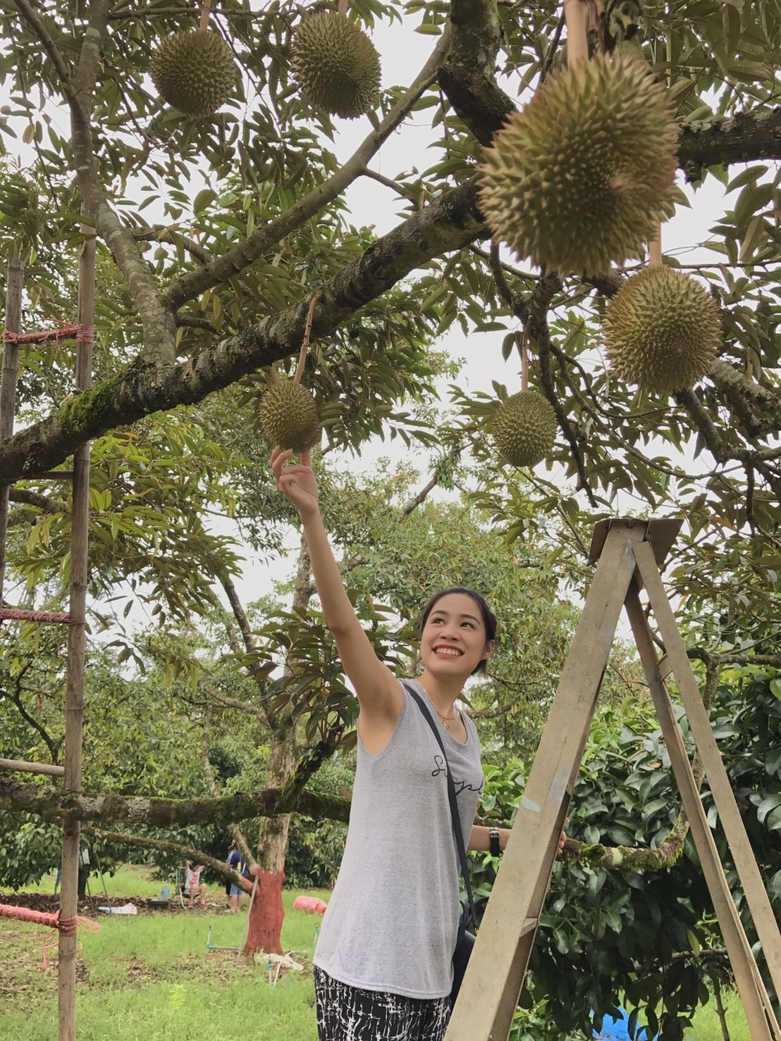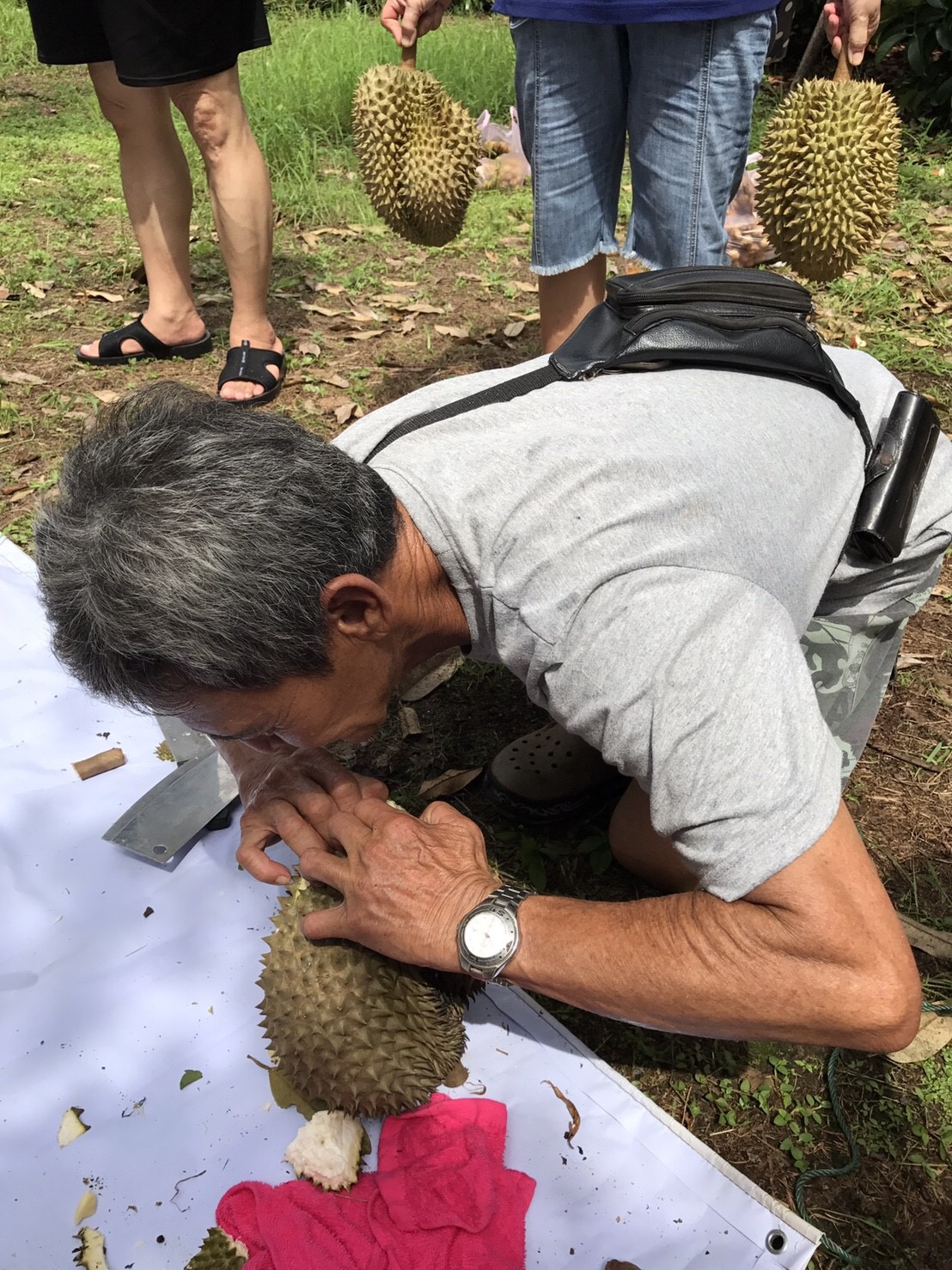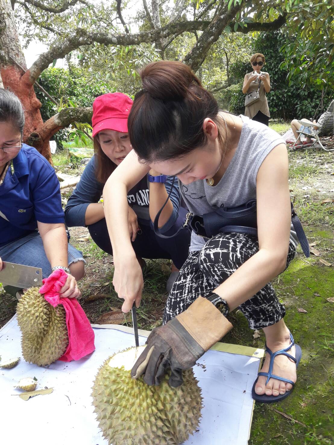 08.30 น. เป้าหมายต่อไปสวนผลไม้ ห่างจากที่พักประมาณ 15 กิโล เด็ด สอย ตัด กินกันในสวน กินกันจนได้ยินเสียงว่าไม่ไหวแล้วนั่นแหละ เจ้าของสวนคือคุณโกวิท ชาวสวน สปอนเซอร์ใหญ่ ไม่คิดเงินสักบาท ถึงได้หยุด ปีนี้เป็นปีทองของชาวสวนอย่างแท้จริง มีล้ง(ผู้รับซื้อส่งออก)เดินมาหาถึงในสวน เพื่อขอตัดส่งออกนอก ได้ราคาดีมากกว่าทุกปี ชาวสวนยิ้มสดใส แต่ผู้บริโภคอย่างเรา ต้องซื้อของแพงกิน ไม่เป็นไรเงินบาทไทยคนไทยได้ เจ้าของสวนใจดี ทั้งให้ฟรี ทั้งแกะให้
