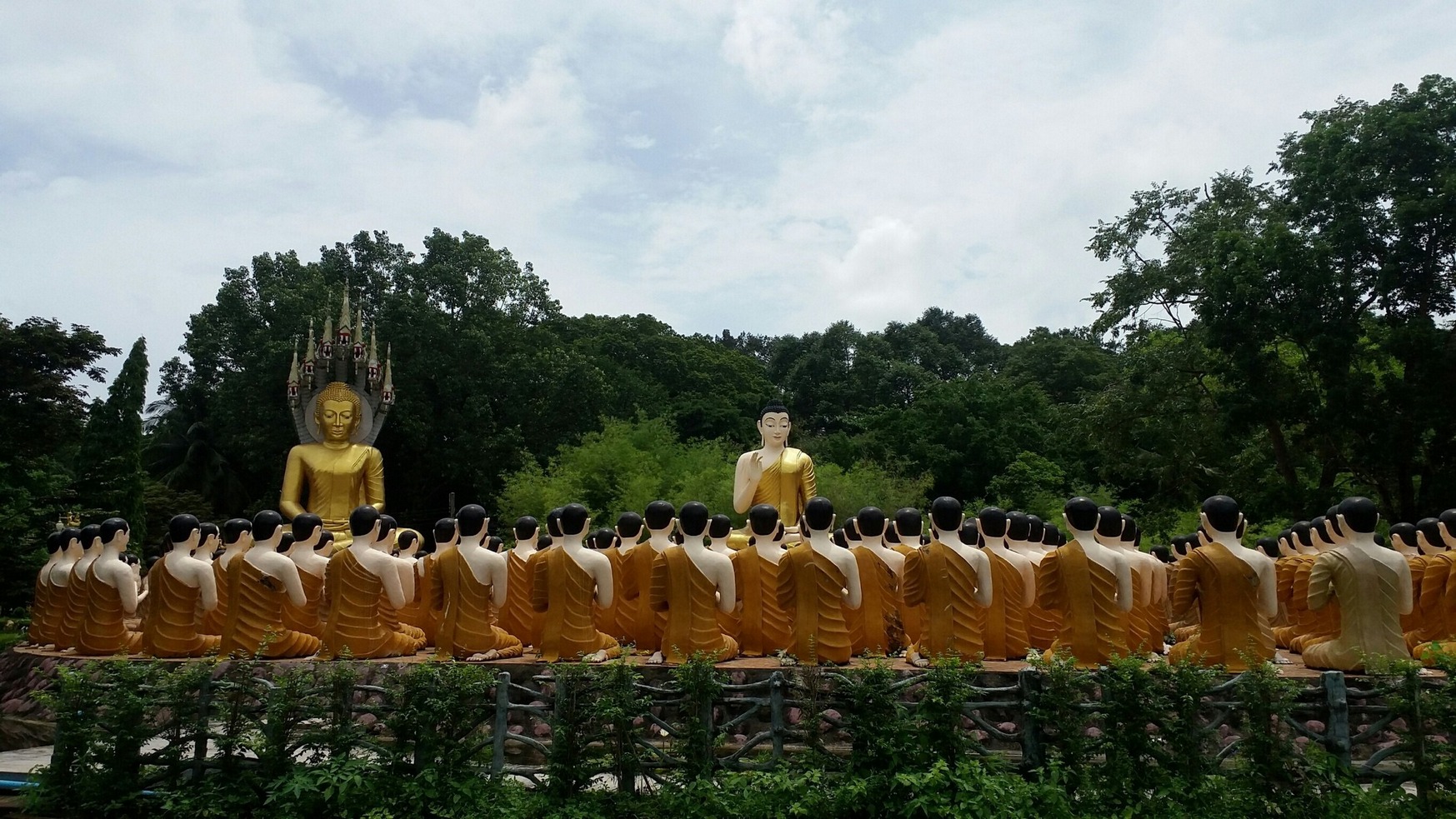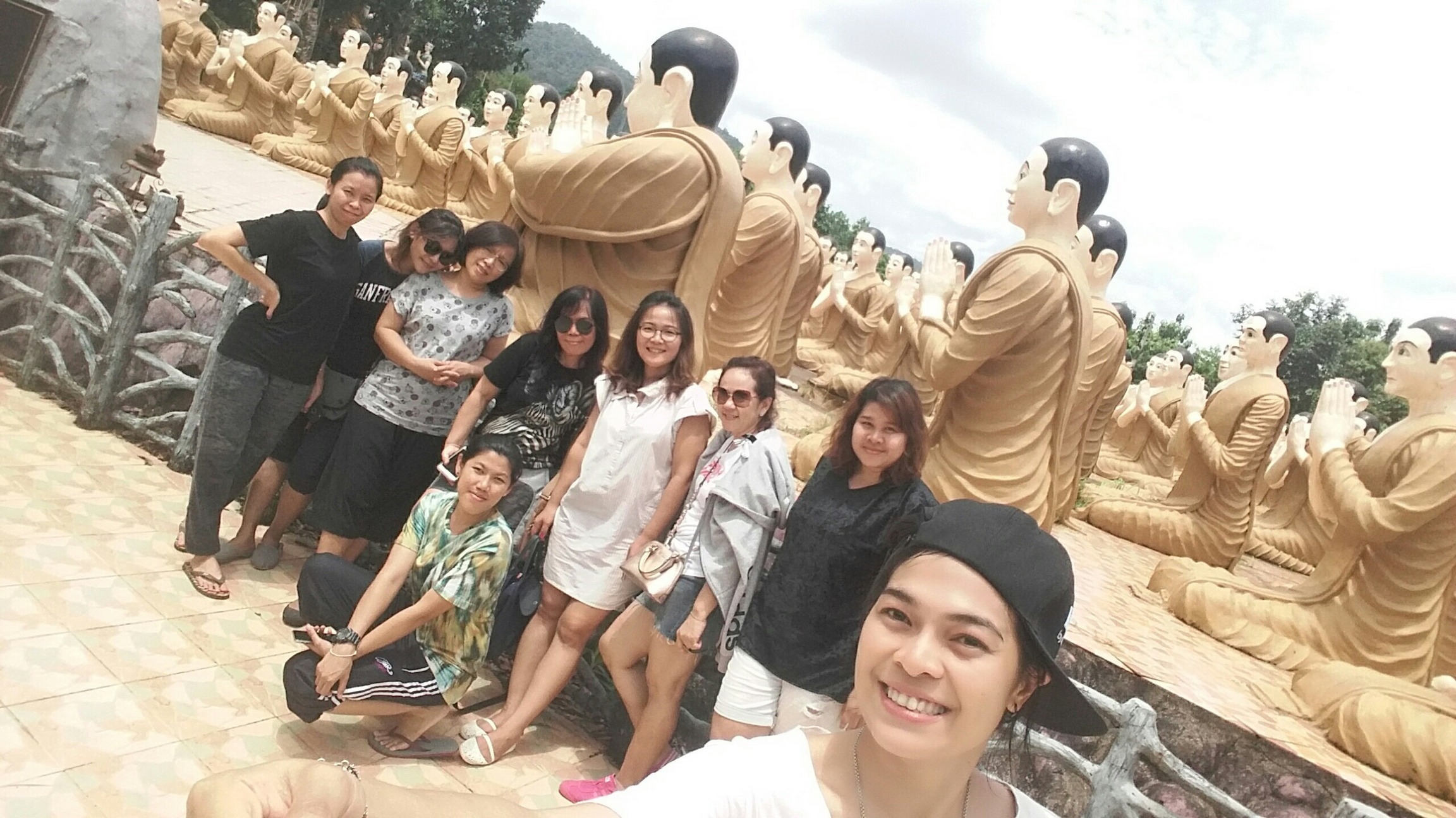 12.30 น. ออกจากน้ำตกพลิ้วกลับที่พัก ระหว่างทางผ่านวัดชากใหญ่ ที่เจ้าของรีสอร์ทแนะนำให้เข้าไปดูให้ได้ บริเวณวัดกว้างขวางมาก มีรูปปั้นพระพุทธรูปหลากหลาย