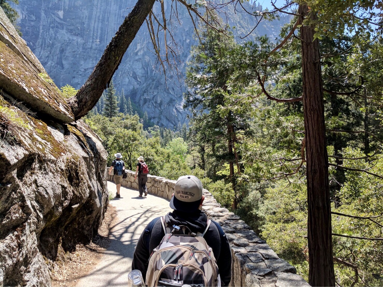 ทางไปยัง Vernal fall เป็นทางเรียบ แต่ค่อนข้างชันเดินไม่ยากถ้าไม่ได้แบกแบคเพคไป เส้นทางนี้เป็นการเดินย้อนกระแสน้ำในแม่น้ำ Merced ซึ่งเราไม่แน่ใจว่าแม่น้ำ Merced ไหลไปถึงไหน เพราะ ชาว Westcoast คงค่อนข้างคุ้นหูกับชื่อนี้มาก ไม่ว่าจะเป็นถนนหนทาง สถานีรถไฟฟ้าขึ้นชื่อของชาวแซนฟรานซิสกันหรือ Bart และอื่นๆอีกมากมาย