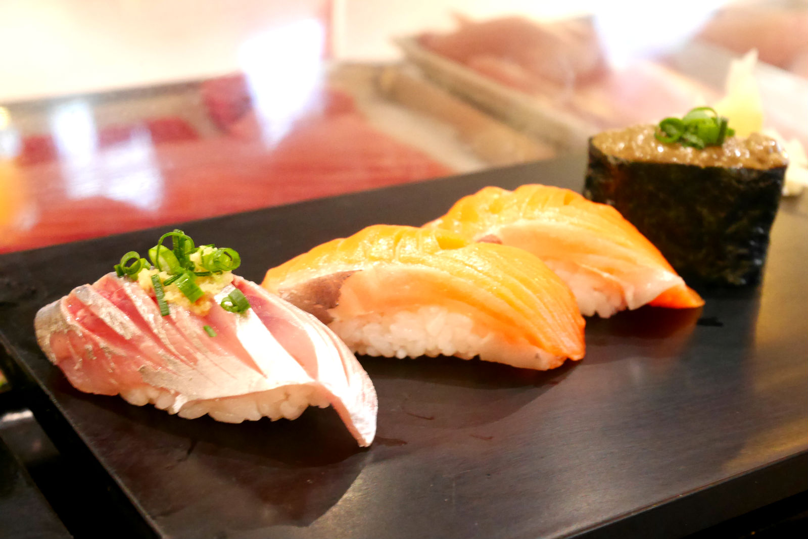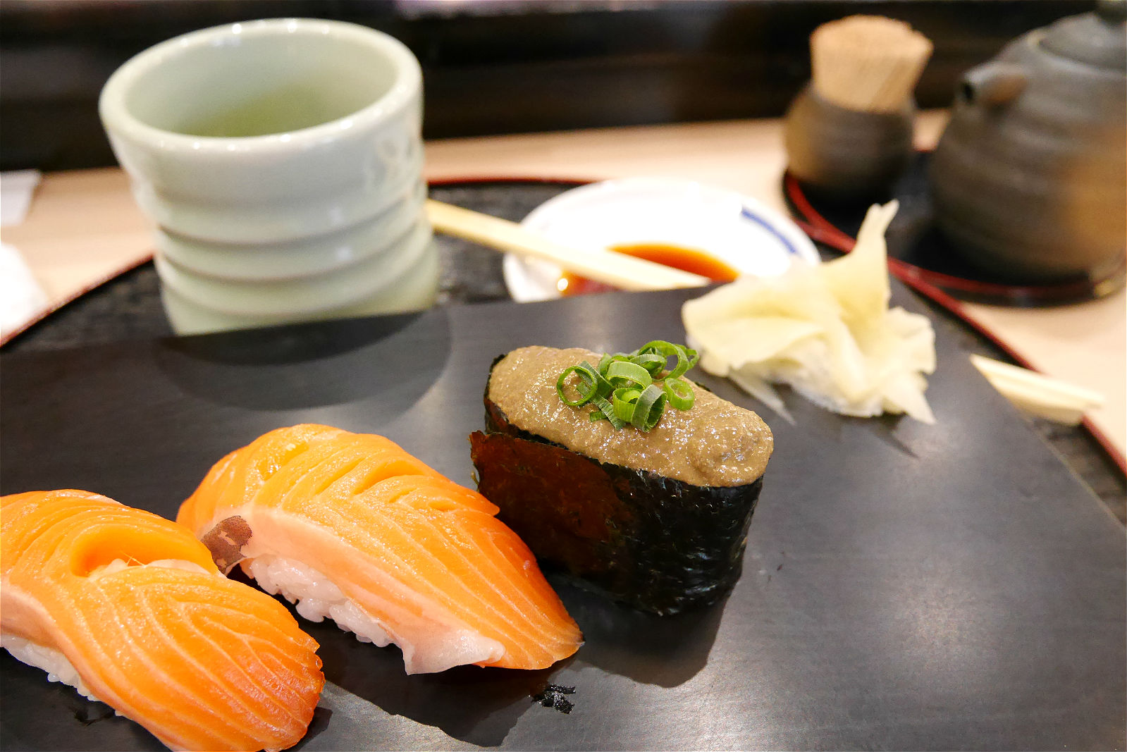 มาถึงคำที่เป็น Kani Miso ซูชิมันปูผสมซอสมิโสะไอซ์จะบอกว่าไม่เคยกินมาก่อนในชีวิตนี้ เห็นเพื่อนไปญี่ปุ่นแล้วบอกว่าอร่อยมาก ต้องลองสิงั้นจัดไป! พอลองปุ๊ปรสชาติก็จะประมาณว่าสัมผัสถึงรสชาติแห่งท้องทะเลจริงๆ555+ไม่ชอบอยากชัดเจนอันนี้แล้วคนชอบไม่ชอบนะ