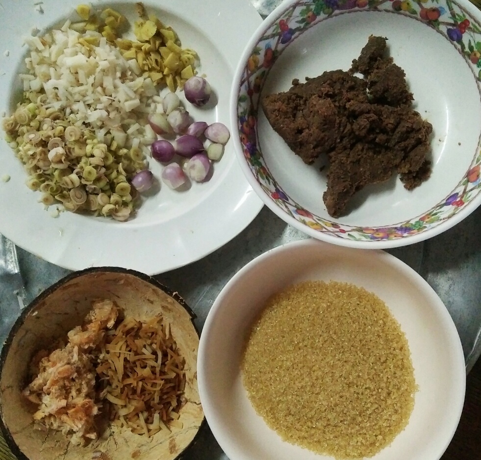 ของทำน้ำจิ้มก็มีประมาณนี้ แต่เราจะใส่กุ้งแห้งและมะพร้าวคั่วลงไปด้วยนิดหน่อย