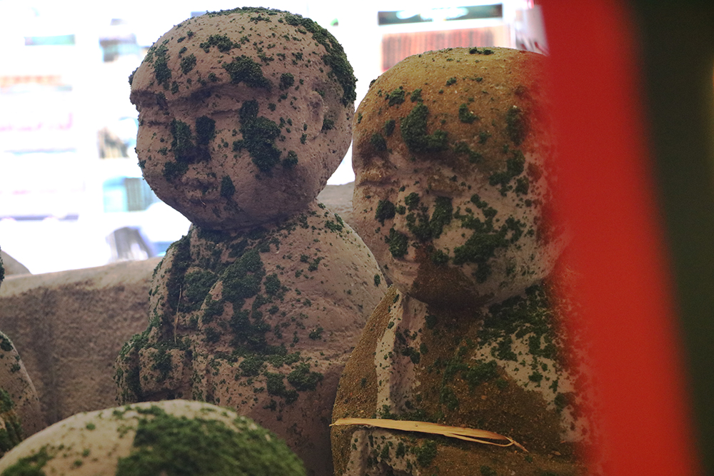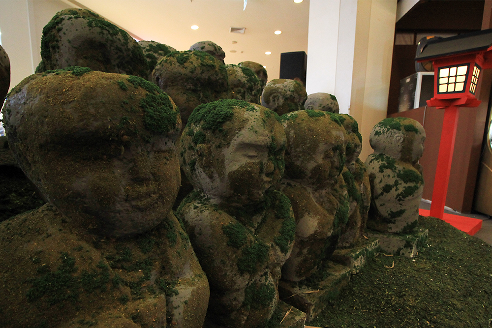เลยกิออนมา มีรูปปั้นพระหิน คาซาจิโซะ ตั้งเรียงกันอยู่ แต่ละรูปก็จะแตกต่างกันไป