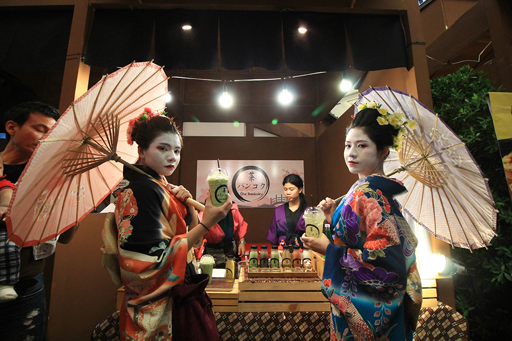 บรรดาพ่อค้าแม่ขายก็ใส่ชุดญี่ปุ่นกันให้อารมณ์เกียวโตมั่กๆ