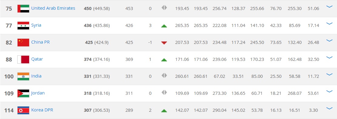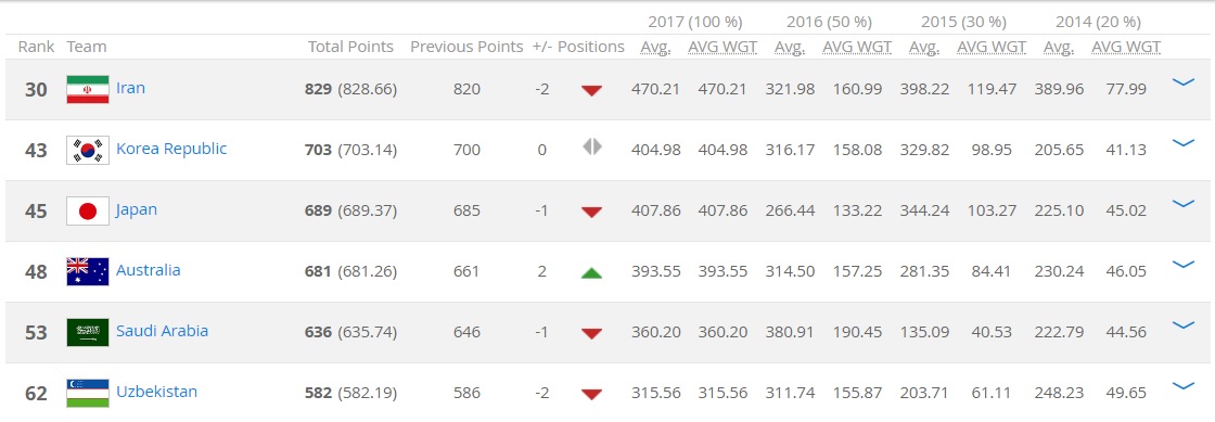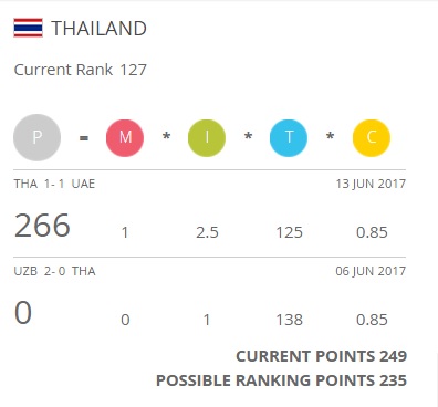 โดยFIFA-World-ranking จะคิดคะแนนเฉลี่ยปีล่าสุด100% ปีที่แล้ว50%