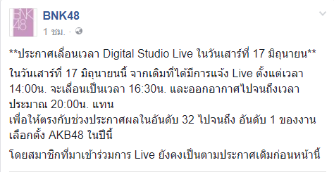 ประกาศเลื่อนเวลา Digital Studio Live ในวันเสาร์ที่ 17 มิถุนายน !!!!!