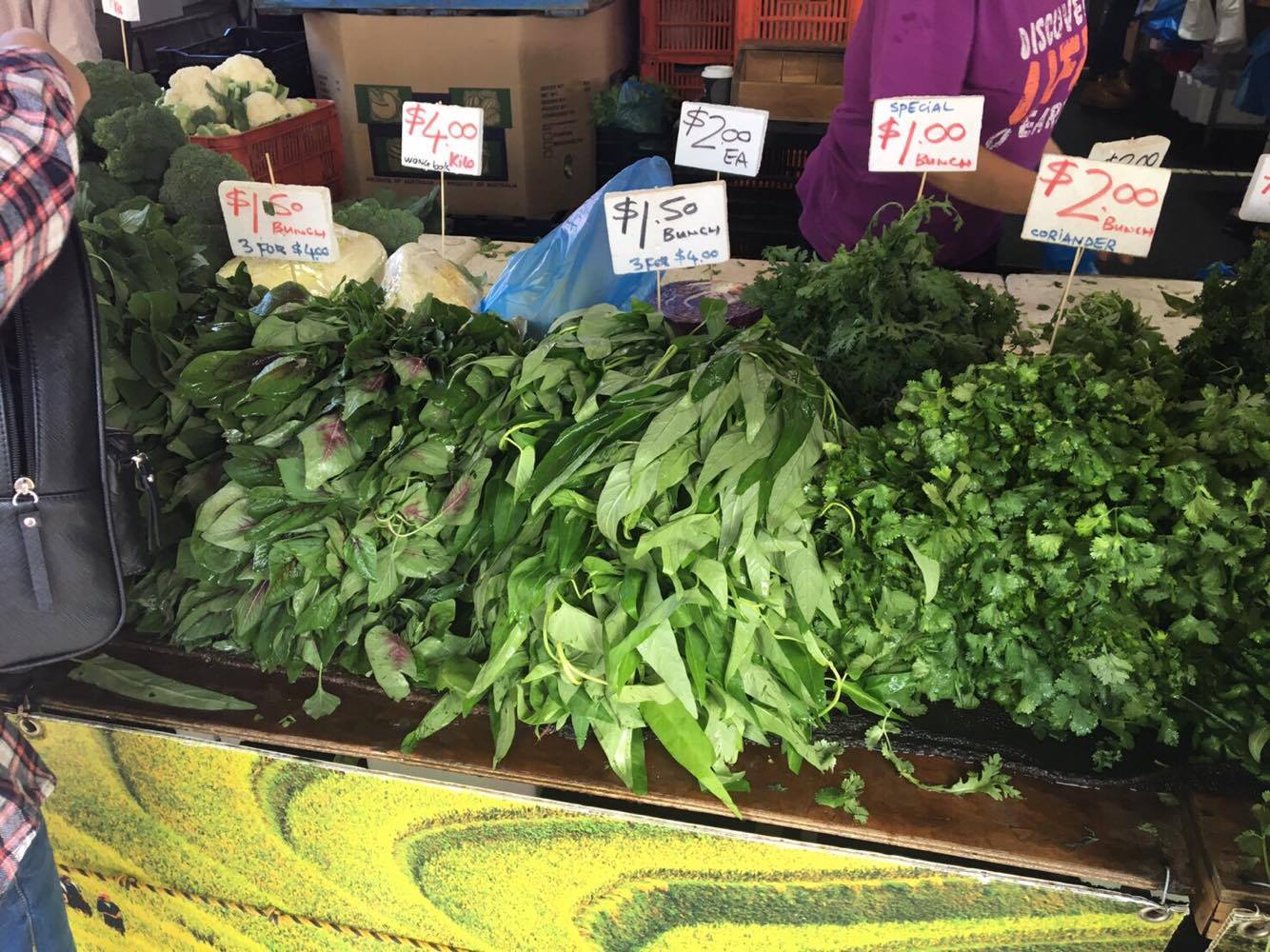 ผักก็มีแค่ผักกาดขาว ผักบุ้ง มี2อย่าง จริงๆโหระพาที่นี่ก็มีขายนะคะ แต่ว่าลืมซื้อ แหะๆ แต่ที่ไม่มีคือผักชีฝรั่งค่ะ ของพวกนี่กี้ซื้อที่วิคตอเรียมาร์เก็ตค่ะ ผักบุ้งนี่กำนึงก็ 2-3 ดอลค่ะ