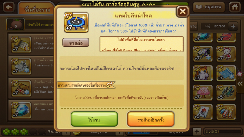 ตอนนี้ผมมี จี้หมวก S+ +7 ออฟเสริม ตกเกาะร้างได้เงิน 130% คือผมอยากรวม ออฟเสริมใหม่ อยากรู้ ว่าถ้ารวมใหม่แล้ว มันจะยังเป็น s+ +7 เหมือนเดิมหรือเปล่า หรือ เปลี่ยนเป็น s+ ธรรมดา ขอบคุณครับ