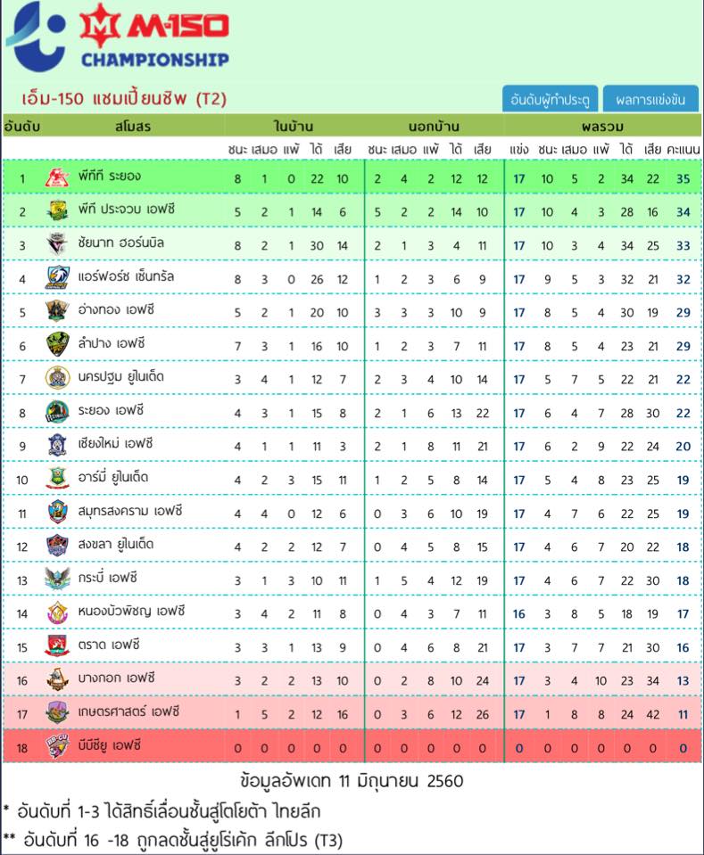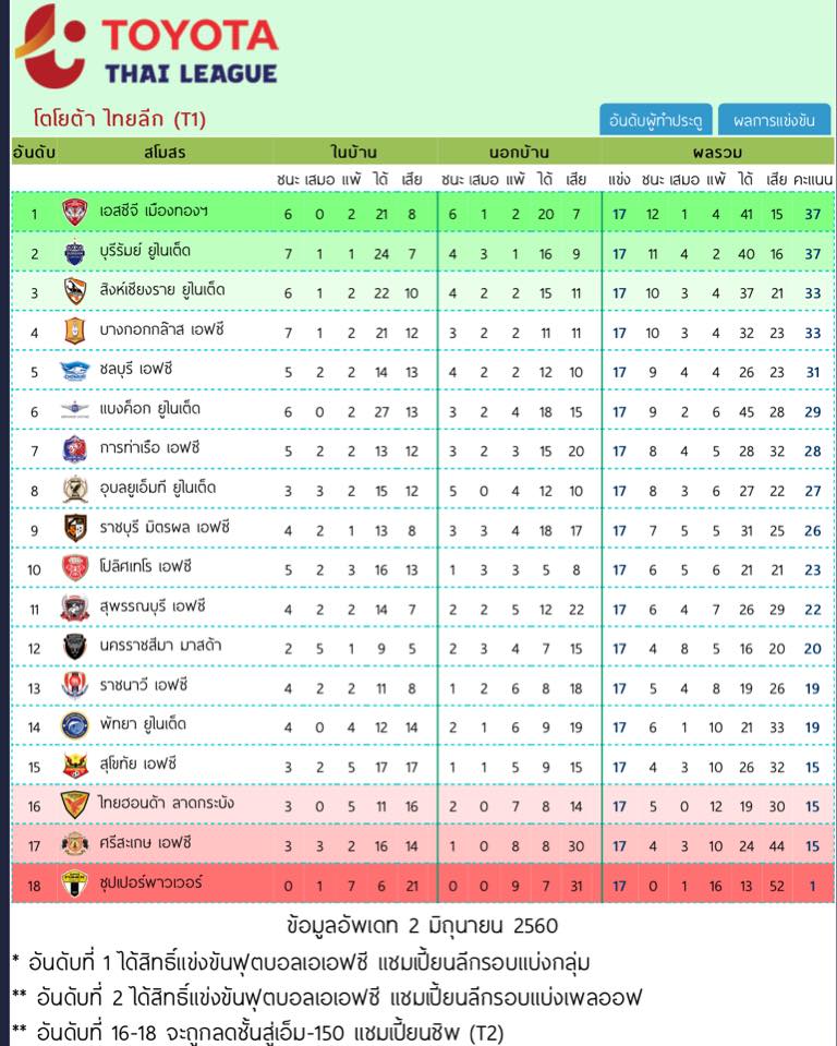 วิเคราะห์ฟุตบอลโตโยต้าไทยลีก T1, T2 ประจำวันที่ 17/06/2017
