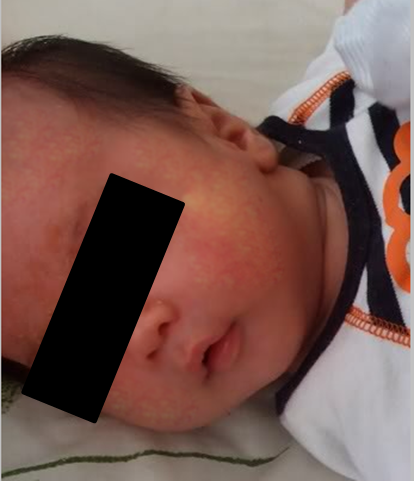 สวัสดีค่าสมาคมคุณแม่ วันนี้เราขอตัวแชร์เรื่องราวโรคยอดฮิตสำหรับเด็กเล็กกันอย่างโรคผื่นในเด็กค่ะ ส่วนมากเราเลี้ยงลูกคิดว่าดีแล้วแต่ดันมีแบบผื่นขึ้นตอนไหนงงไปเลย เราก็มีเหตุการณ์แบบนั้นเหมือนกันค่ะ ขอเล่าก่อนค่ะ วันนึงเรากลับมาเช็คลูกเราตอนเย็นเปลี่ยนเสื้อแล้วเห็นผื่นค่ะ ตกใจมาก และไม่สามารถหาสาเหตุได้ด้วยค่ะ ว่าทำไมถึงเป็นแบบนั้น ตอนนั้นเลยรีบไปร้านยา เภสัชแนะนำ TA Cream ให้ค่ะ ตัวนี้เขาว่าใช้ได้ประมาณสองสัปดาห์ก็ดีขึ้นนะ แต่พอมารู้ว่ามันเป็นสเตียรอยด์เราก็ไม่อยากทาต่อนานๆเลย ทาไปซักพักอาการก็ดูจะไม่ดีขึ้นเท่าไหร่ เลยต้องไปคลินิกเด็กจริงๆจัง อันนี้เป็นรูปที่เราเคยถ่ายเก็บไว้ในตอนนั้นค่ะ