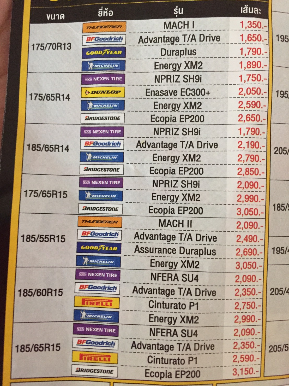 เดิมเป็น bridgestone ecopia EP200 175/65R15 ตอนนี้จะเปลี่ยนยาง พอ search ในเน็ตเห็นแนะนำให้เปลี่ยนเป็น 185/60R15 turanza AR10 แต่เราไม่เห็นมีในโบรชัวร์ bquick เลย