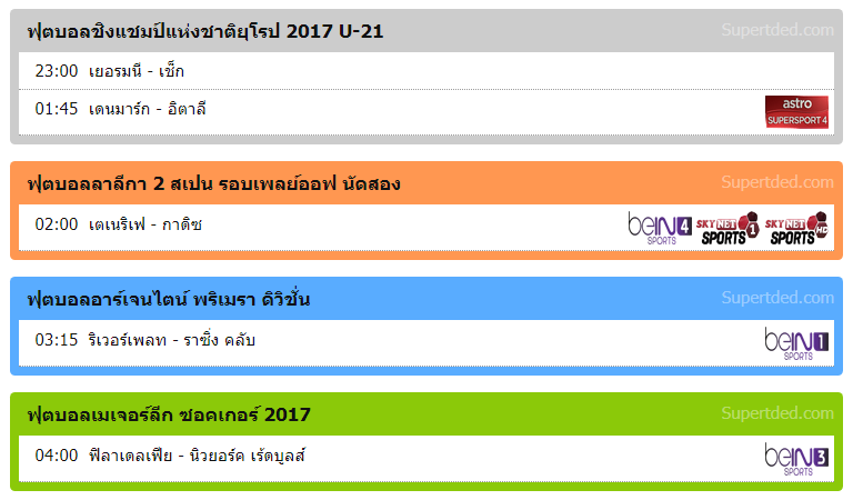โปรแกรมถ่ายทอดสดฟุตบอล 21/06/2560 ข้อมูลจาก https://supertded.com/โปรแกรมถ่ายทอดสด