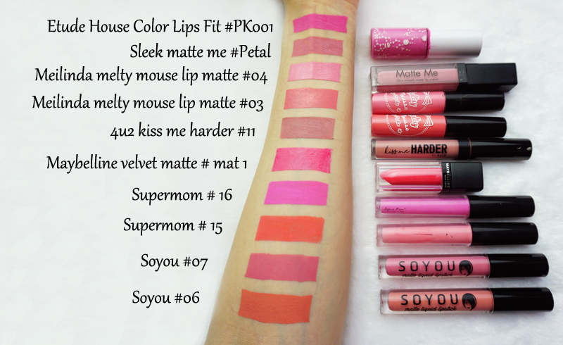 ปาด2 meilinda กับ Maybelline ตามไปติดๆกับetude sleek และ soyou เริ่มจางๆ
