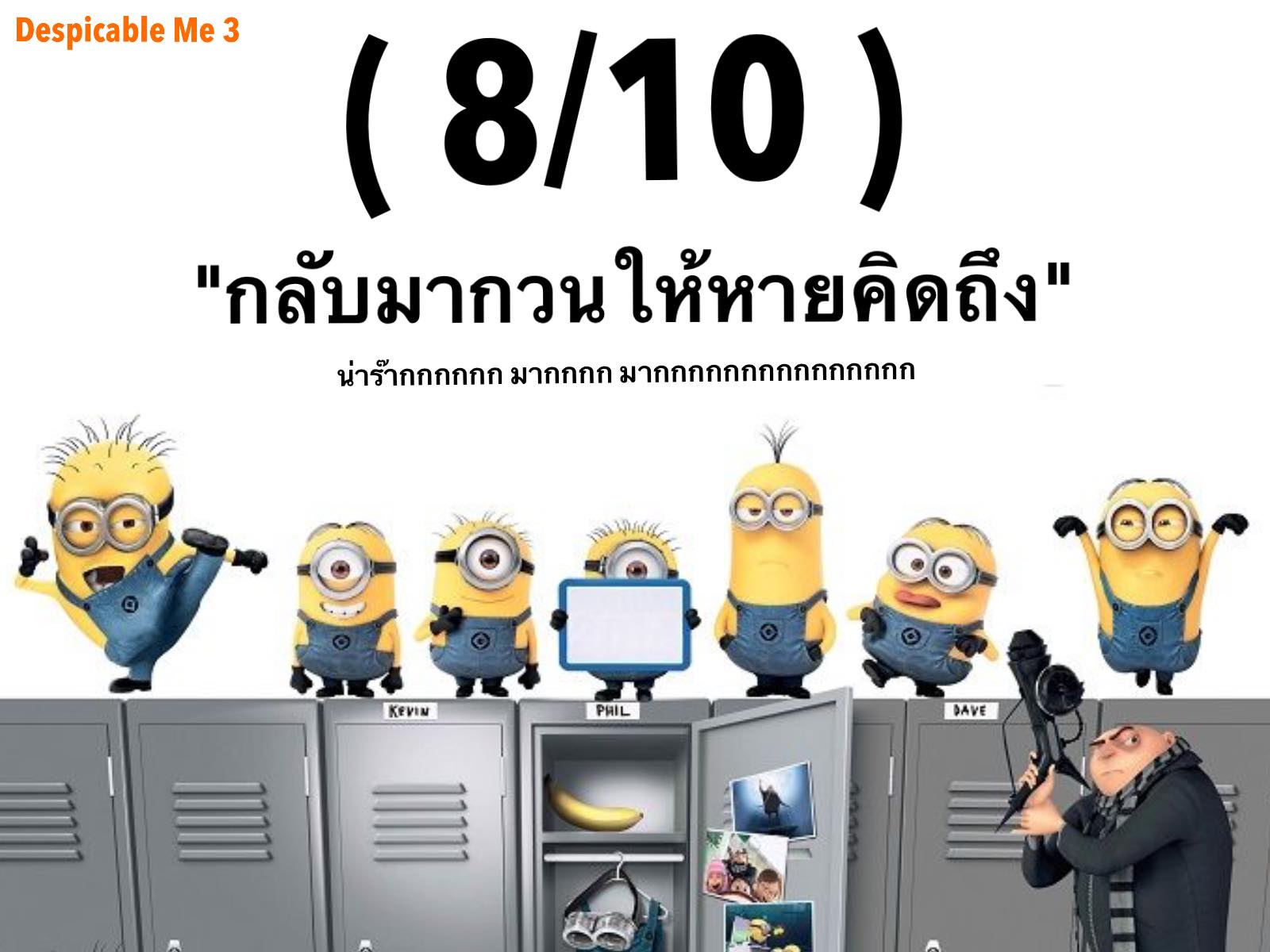 -บอกก่อนด้วยความลำเอียงจากทุนเดิม แอดมินชอบ มินเนี่ยนมากกกกกกกกกก ดังนั้นแค่มินเนี่ยนก็บวกไป 5 คะแนนโลด อีก 3 มาจากความเพลินส่วนตัวล้วนๆ