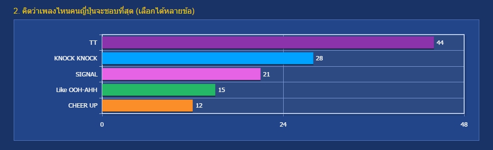 2. คิดว่าเพลงไหนคนญี่ปุ่นจะชอบที่สุด (เลือกได้หลายข้อ) เป็นการโหวตเฉลี่ย
