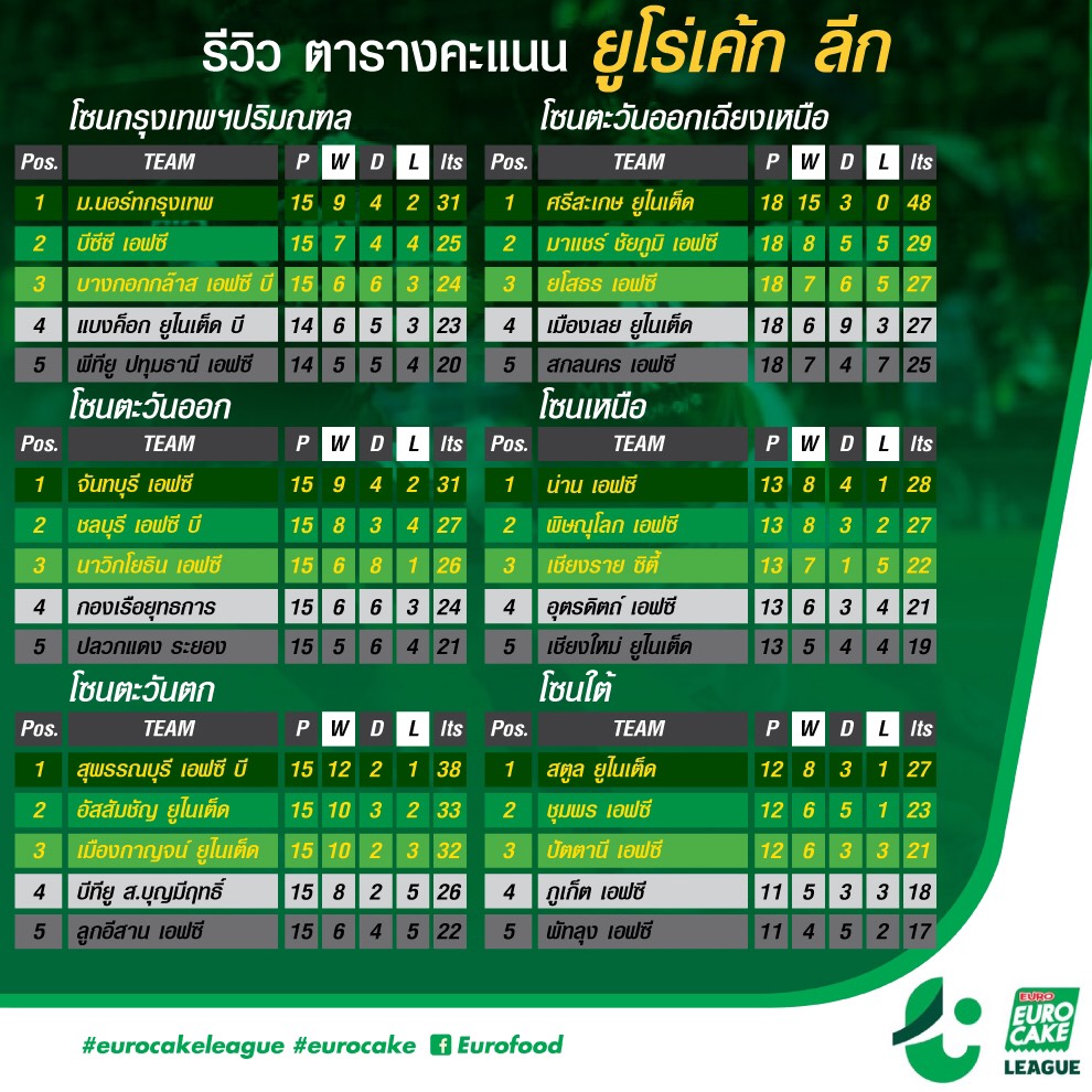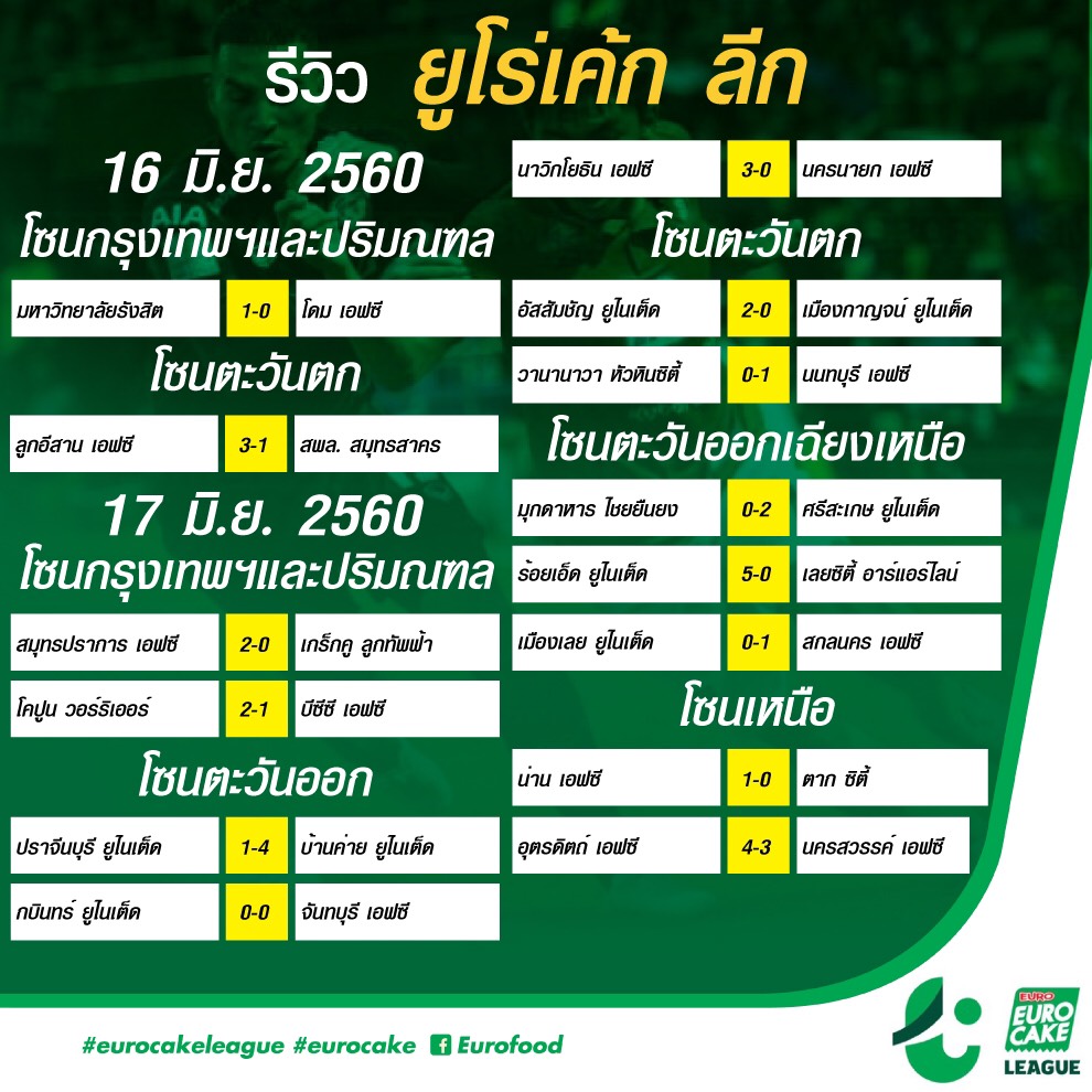 ขอบคุณข้อมูลจาก ยูโร่เค้ก ลีก ผู้สนับสนุนฟุตบอล ยูโร่เค้ก ลีก โปร และ ยูโร่เค้ก ลีก อย่างเป็นทางการ