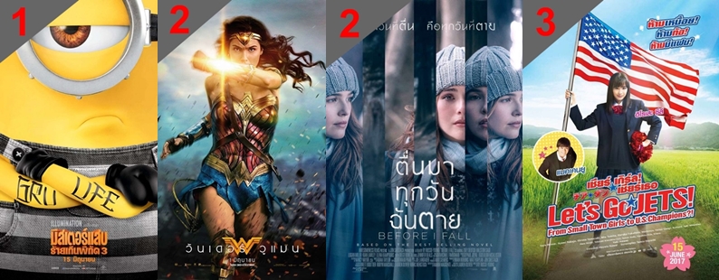 อันดับ 2 : Wonder Woman ต้นกำเนิดของซูเปอร์ฮีโร่หญิง เจ้าหญิงแห่งเกาะเทอร์มีสกีร่า หนังมีการเล่าเรื่องแบบไม่ยืดเยื้อ ง่ายต่อการเข้าใจ รวมถึงการตัดต่อฉากแอ็คชั่นที่ระทึกใจคนดูได้อย่างดี ส่วน Before I Fall บอกเล่าเรื่องวันสุดท้ายของ แซม หญิงสาวที่จะต้องใช้ชีวิตติดอยู่กับวันเดิมซ้ำๆ ไปตลอดกาล สะท้อนเรื่องราวความรักของความสัมพันธ์กับคนในครอบครัว เพื่อน รวมถึงความรัก