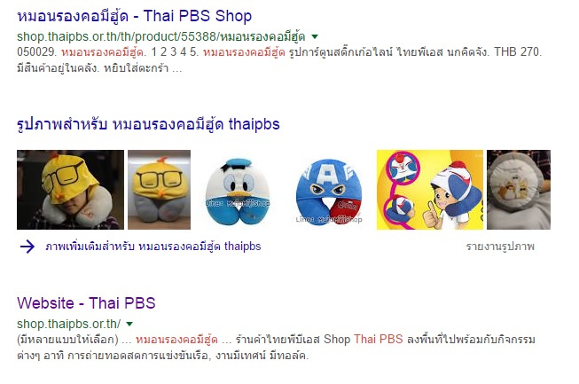 พอจบรายการ เลยลองพิมหาในกูเกิ้ลดู พิมคำว่า "หมอนรองคอมีฮู้ด ThaiPBS"