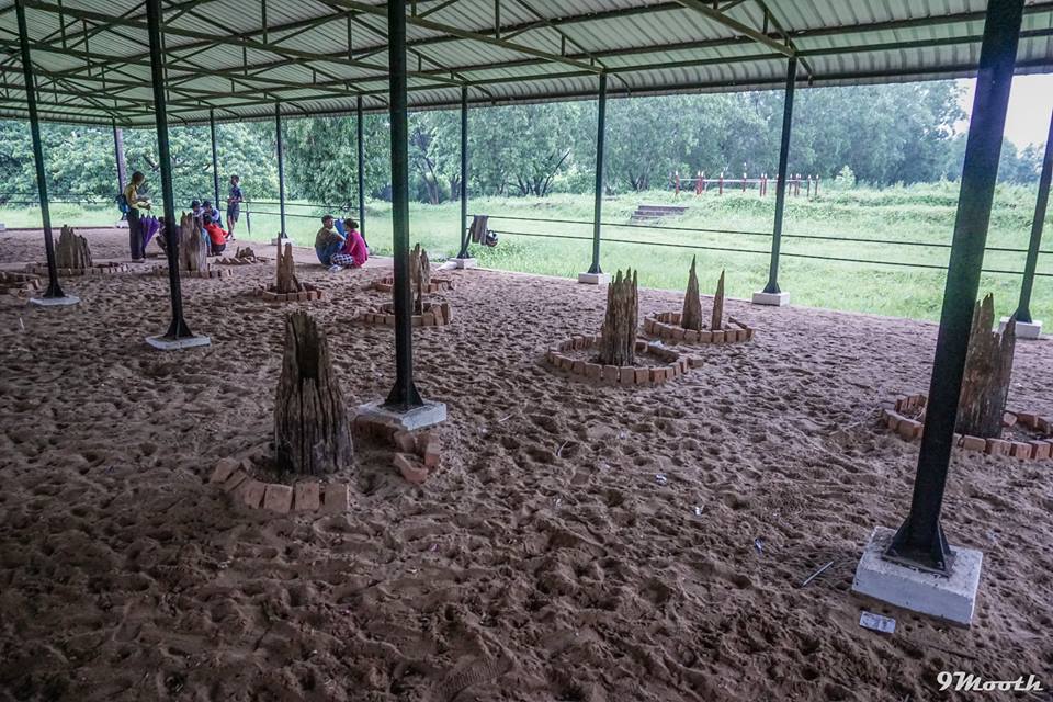 และเดินออกมาจากจุดนั้น ก็มาเจอภาพเสาเข็มเสาไม้เก่าที่เคยเอาไว้ทำพระราชวัง ซึ่งเขาเก็บไว้เพื่อให้คนรุ่นหลังได้ดู (ดูมีมนต์ขลังมาก) จากนั้นเดินทางไปดูพระราชวังพระเจ้าบุเรงนอง ที่เขาบูรณะใหม่ แต่เขาบอกว่าอันเก่าสวยกว่าเพราะเป็นทองทั้งหมดแต่ตอนนี้คงเหลือน้อยแล้ว สักพักฝนเป็นใจให้อีกครั้งเริ่มตกซาๆที่พอจะถ่ายรูปได้ (ดีใจมาก)