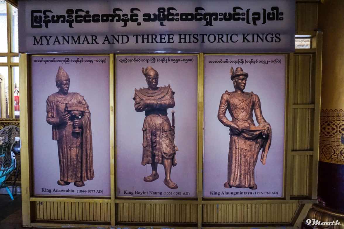 พอเดินเข้าไปก็เห็นห้องโถงและประวัติขิองพระเจ้าบุเรงนองและผู้ก่อตั้งพม่าในยุคก่อนๆที่สำคัญ