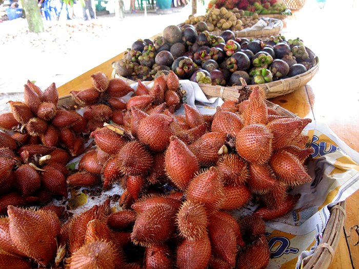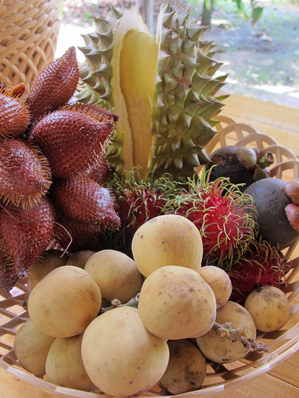 ที่นี่มีบุฟเฟ่ต์ผลไม้ให้ทานแบบไม่จำกัดเวลา ทั้งทุเรียนชะนี มังคุด เงาะ สละ ลองกอง ขนุน