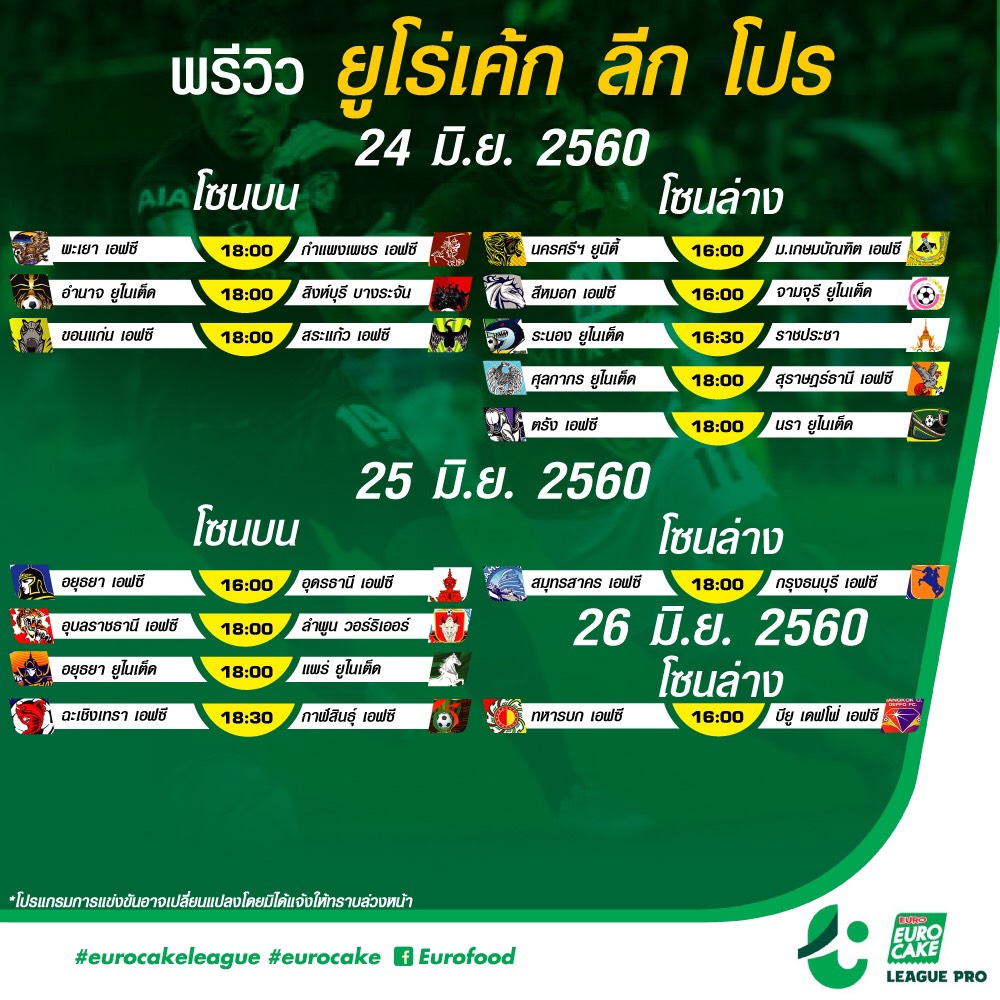 ขอบคุณข้อมูลจาก ยูโร่เค้ก ลีก ผู้สนับสนุนฟุตบอล ยูโร่เค้ก ลีก โปร และ ยูโร่เค้ก ลีก อย่างเป็นทางการ