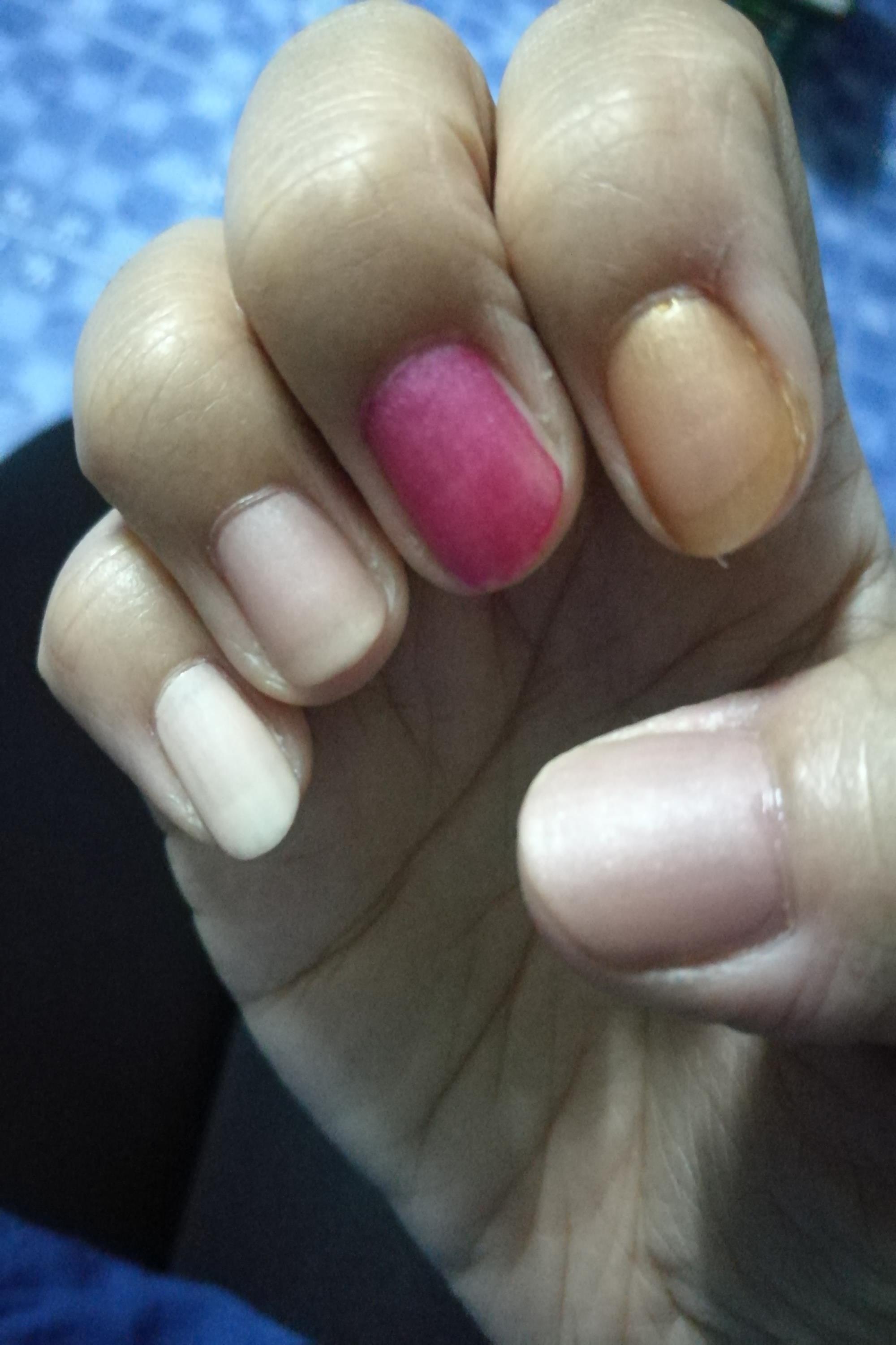 คืออยากให้เล็บเงาค่ะ แล้วเคยใช้ยาเคลือบเล็บของ Daiso เป็นสีม่วง เขียนว่า Nail Hardener เป็นที่ป้ายบอกว่าช่วยให้เล็บแข็งแรง พอลองใช้ มันก็ลอกเหมือนยาทาเล็บเลยให้ ยาล้างเล็บลบออก ปรากฎว่า เล็บด้านค่ะ เล
