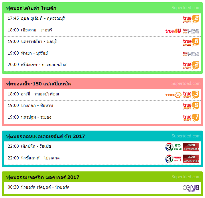 โปรแกรมถ่ายทอดสดฟุตบอล 18/06/2560 ข้อมูลจากเว็บไซต์ https://supertded.com/โปรแกรมถ่ายทอดสด