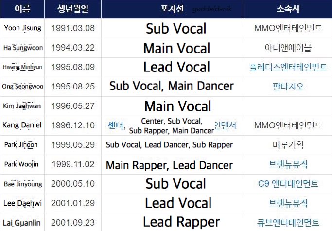 [WANNAONE]กระทู้รวบรวมรูป&ข้อมูลเมมเบอร์