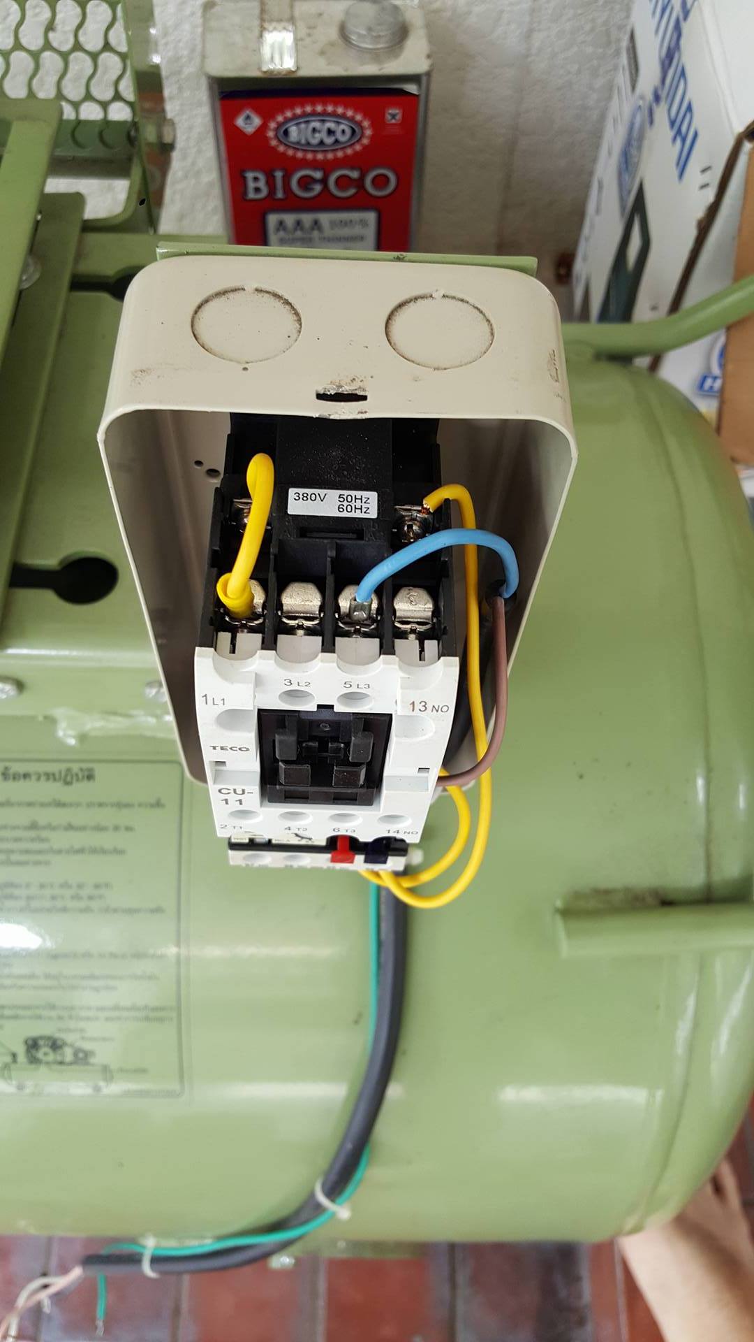 ไฟเข้าสายสีน้ำตาลกับฟ้า(สายใหญ่)ด้านซ้าย เข้าL1กับL3