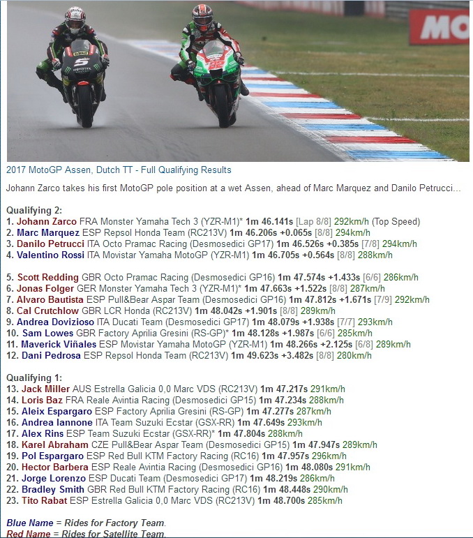 ตำแหน่งสตาร์ทของMOTO GPวันพรุ่งนี้ ที่สนามAssenครับ