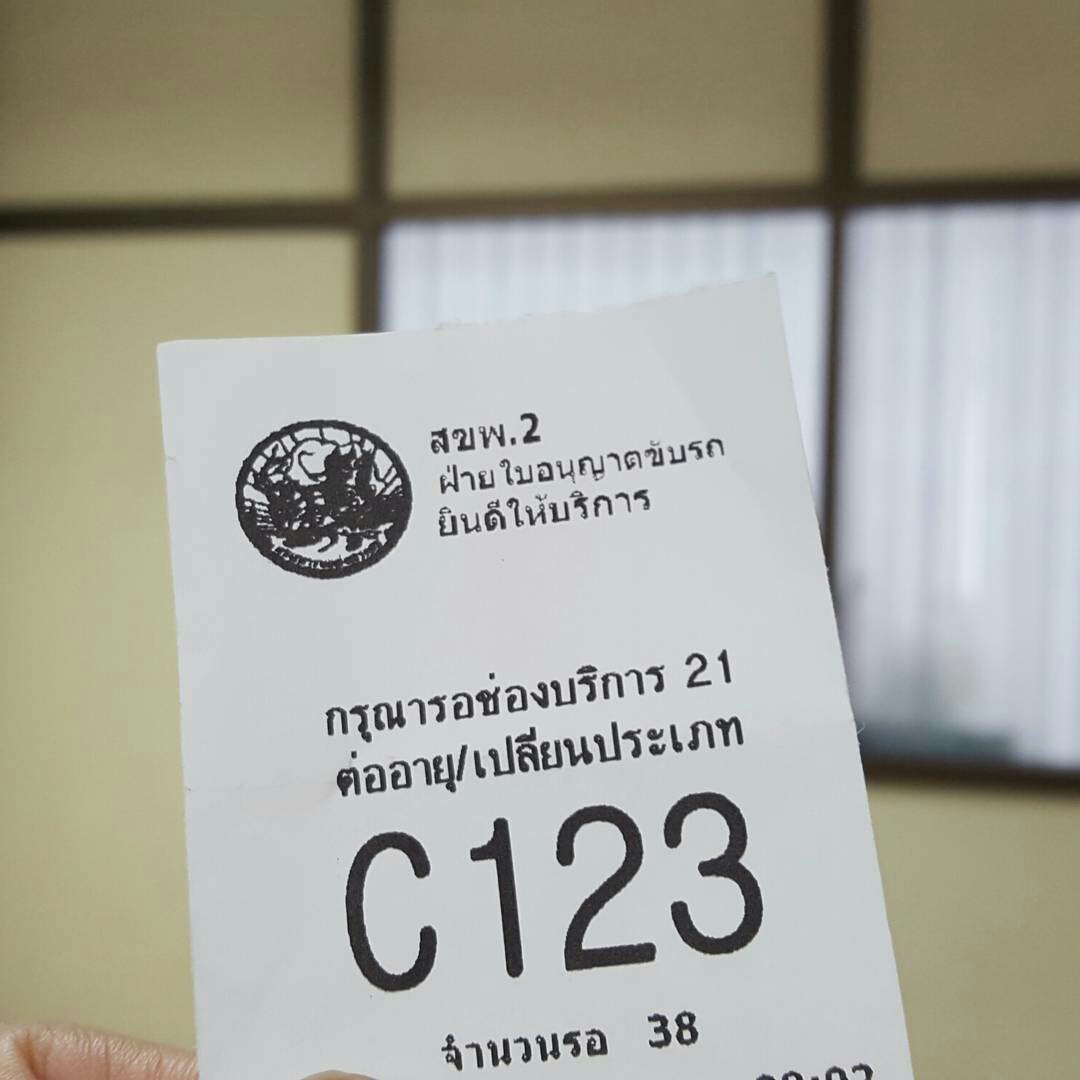 นำเอกสารไปยื่นที่กรมขนส่งรอคิว จากนั้นก็ทดสอบสายตาการมองสี สายตาทางลึก