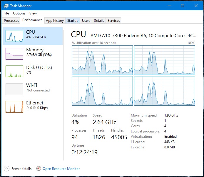 CPU : AMD A10-7300 (1.9 up to 3.2 GHz)