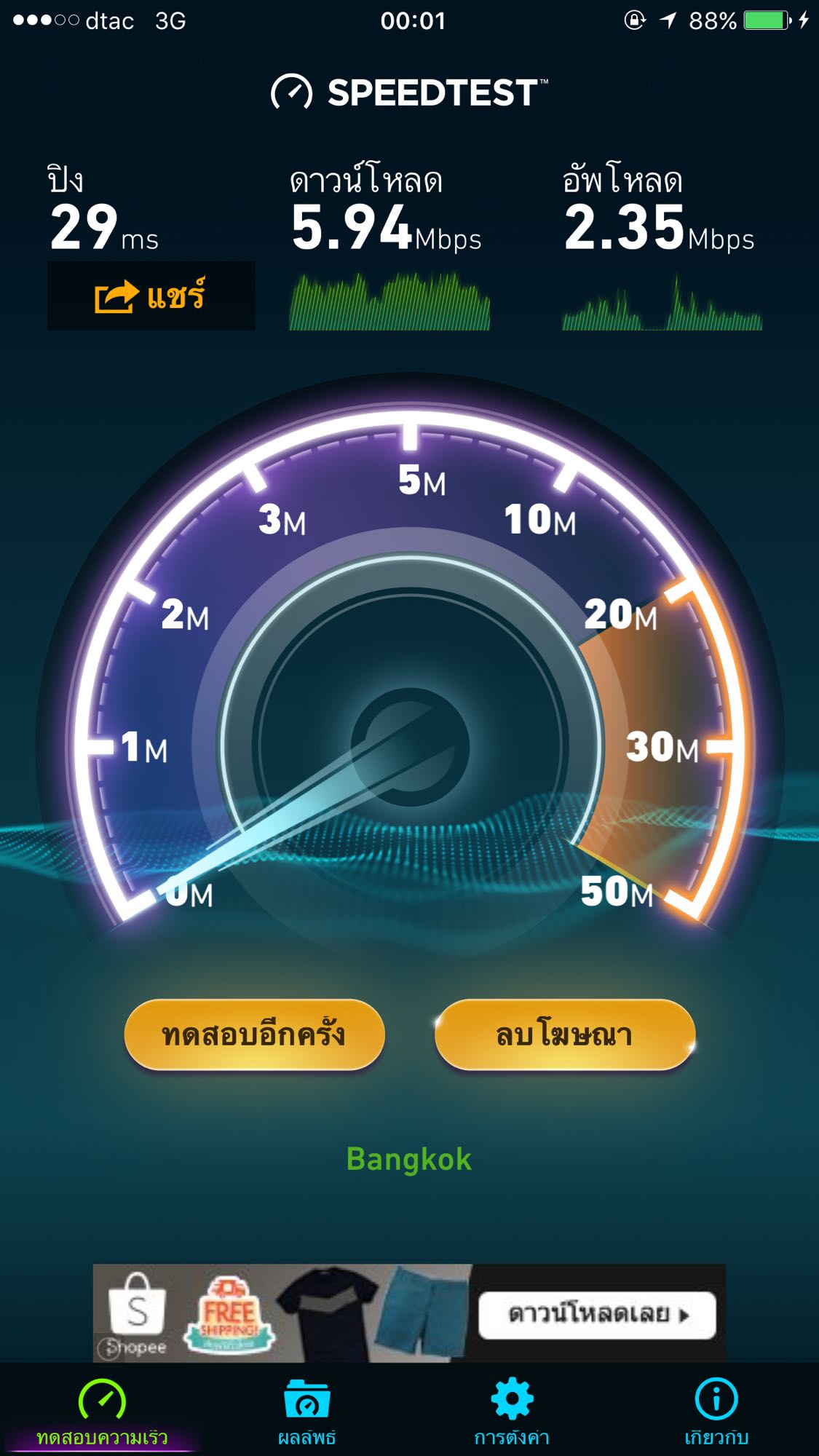 ปล.เทสTrue(เบอร์ที่ใช้ธุรกินส่วนตัว)ได้40++++กว่าMpตลอดโปรลด50% บ้างที่เทสไม่ถึง5Mpแต่ลื่นกว่าDtacที่เทสได้10Mp แหลือAis