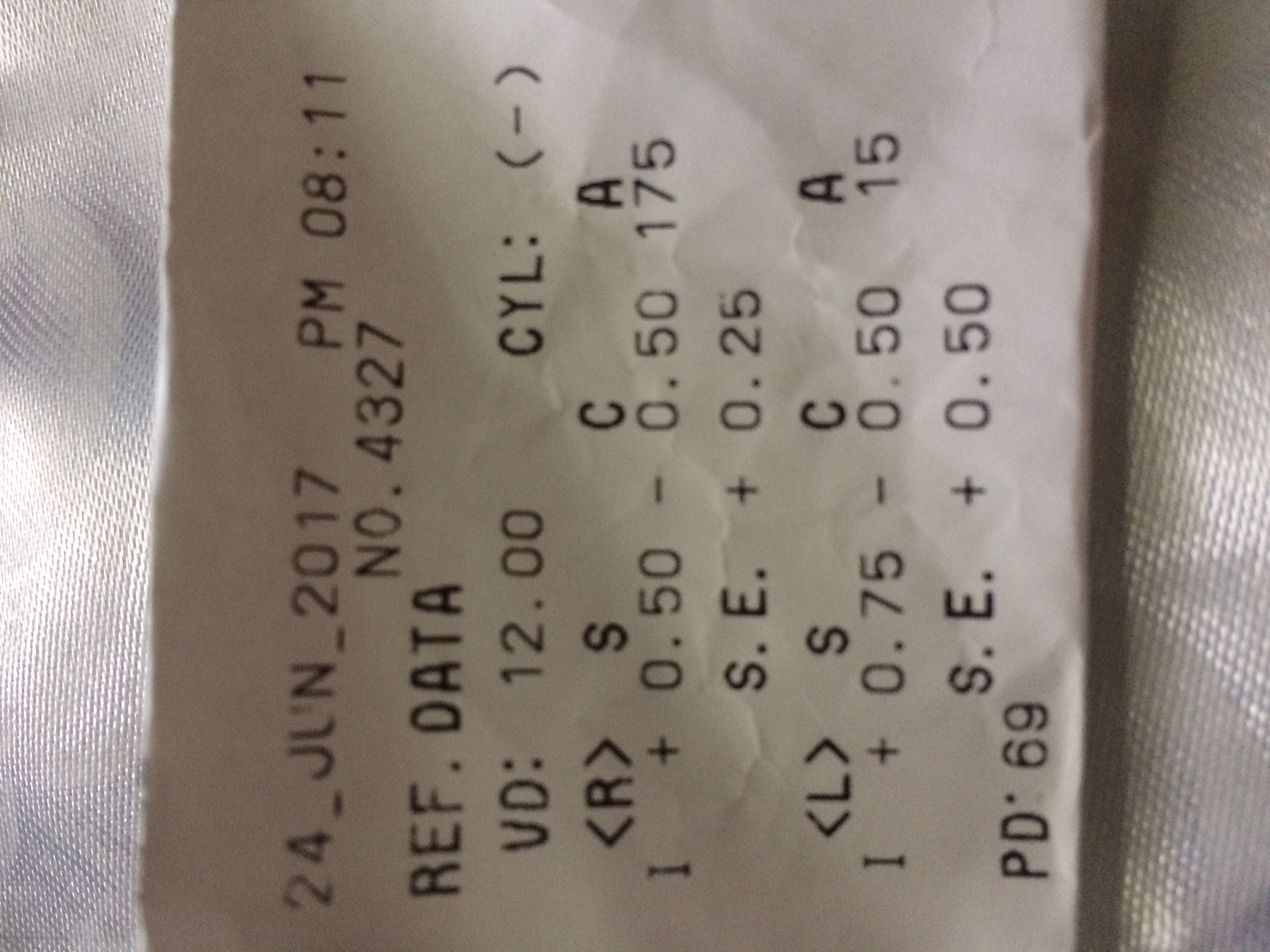คือเมื่อวานตรวจสุขภาพนักศึกษาปี 1 แล้วไปตรวจสายตากับเครื่อง จนท.บอกว่าให้เอาคางวางไว้ตรงจุดนี้ พอวางปั๊บไม่ถึง 10 วิก็เสร็จแล้วได้ค่าสายตามา ไปพบ จนท. อีกคนบอกว่าผมสายตาเอียง ต้องตัดแว่นนะ จะตัดไหม เดี๋ยวจะคุยกับคุณแม่ให้ ผมบอกว่าขอไปคุยกับคุณแม่ก่อน เขาบอกว่าวันนี้ราคาถูก วันอื่นจะแพงนะ ผมยืนยันว่ายังไม่เอา เพราะผมกลัวโดนหลอกเนื่องจากไม่มีความรู้เรื่องพวกนี้เลย ช่วยดูให้หน่อยครับว่าสายตาผมเอียงจนต้องตัดแว่นเลยไหม