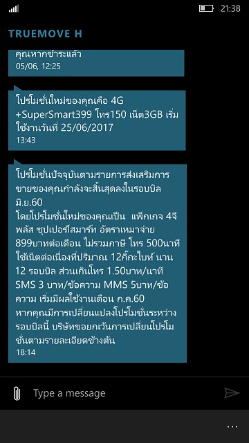 จนวันที่ 25 พฤษภาคม ทาง True ส่ง SMS แจ้งมาว่าตัวเก่าผมหมดอายุ แล้วย้ายผมไปโปรใหม่ตามรูป