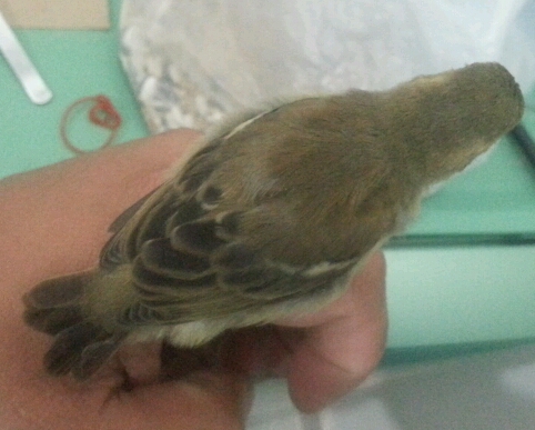 ได้ช่วยลูกนกกระจอกตกจากรังไว้ครับ มันยังไม่ลืมตาเลย จนตอนนี้ 2 เดือน + 10 วัน แล้ว แต่ตั้งแต่มันเรื่มบินได้ มันมีปัญหาตรงที่เวลามันบินแล้วตอนหุบปีก ปีกมันจะไม่ค่อยลง (เป็นข้างเดียว) มันจะชี้ขึ้นเหมือน